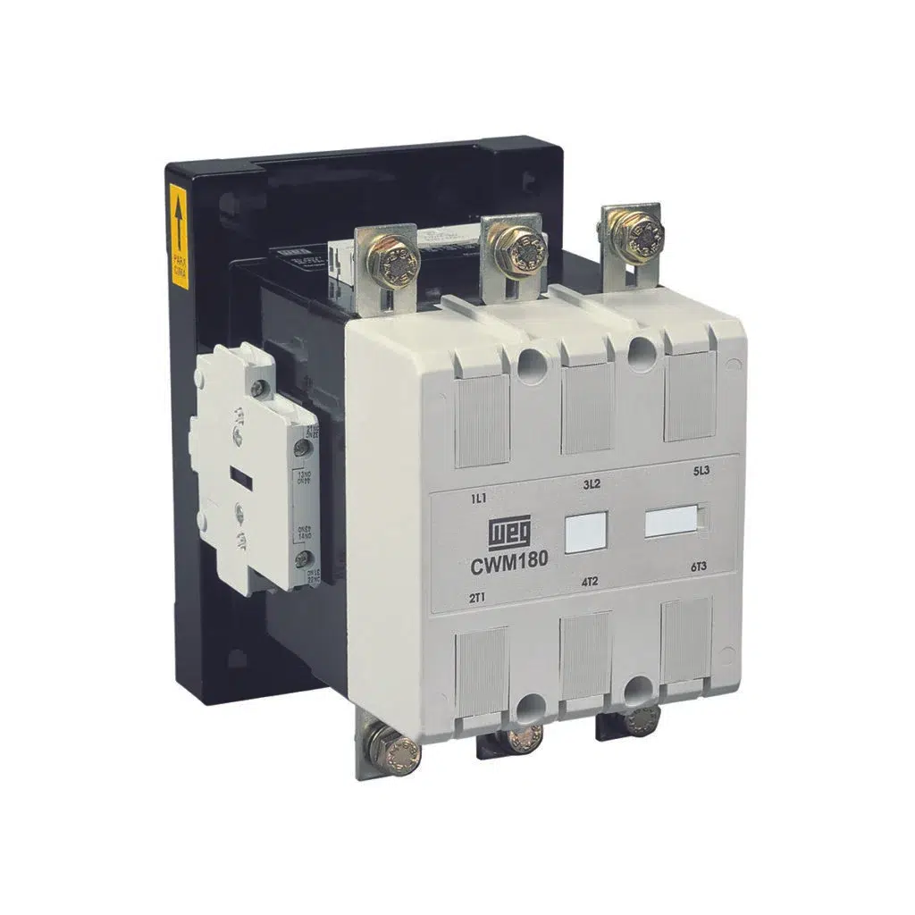 Contactor Serie CWM180, Bobina 220 Vca 60Hz, Marca WEG, Codigo 10045398, de 180 Amperes, Contacto auxiliar NA (Normalmente Abierto) 2 y Contacto auxiliar NC (Normalmente cerrado) 2
